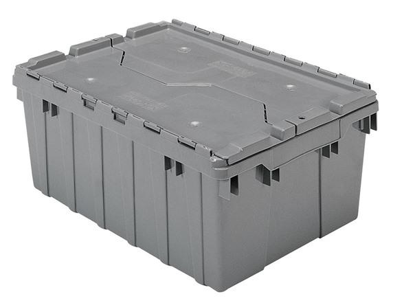 Akro-Mils 39085 Attached Lid Container Plastic Storage and Distribution Tote with Hinged Lid - 21.5i AKR1200