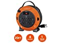 I got this model before and can confirm that it has a big dial on the back used to crank the cord back onto the spool. It has proven to be very useful when half of the electrical wiring went bad in my bedroom.