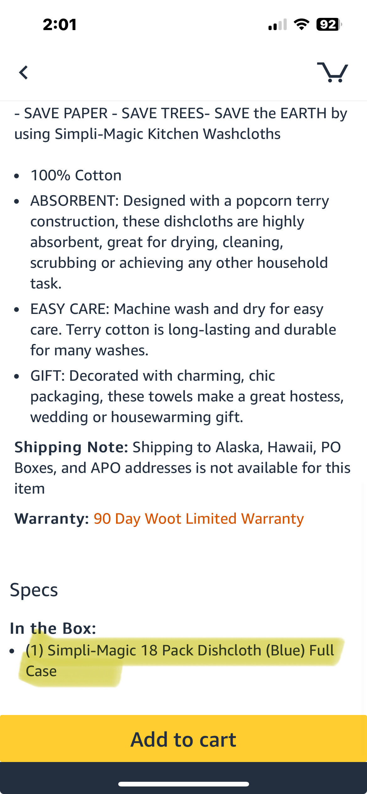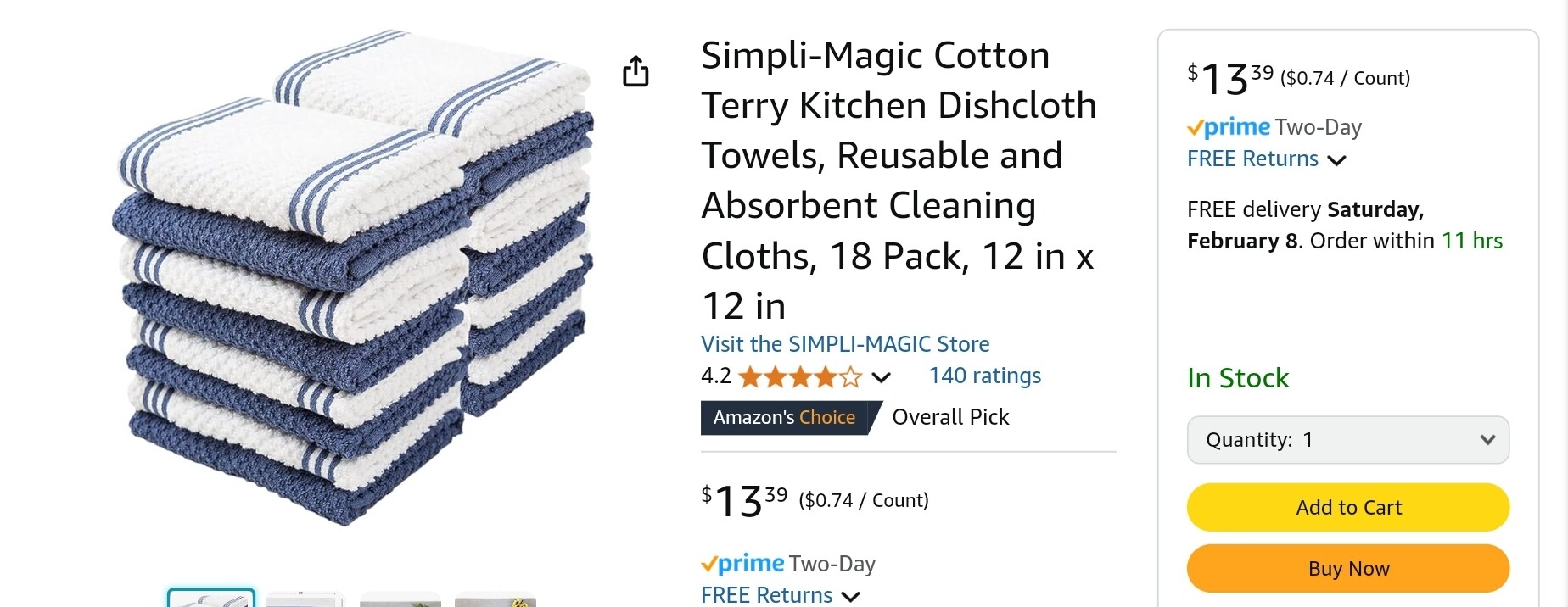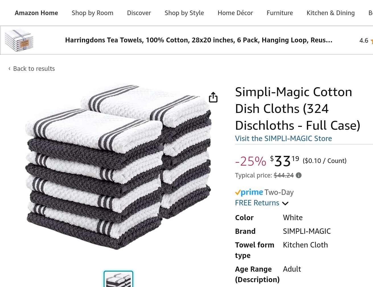 As I mentioned, I went ahead and purchased the 100 count kitchen towels from the same company through Amazon. They just arrive. My wife loves me, lol. A great 100% cotton 27"x16" kitchen towel. It’s not like the ones Woot is offering here. At 31 bucks, each towel comes out to 30 cents each, crazy.