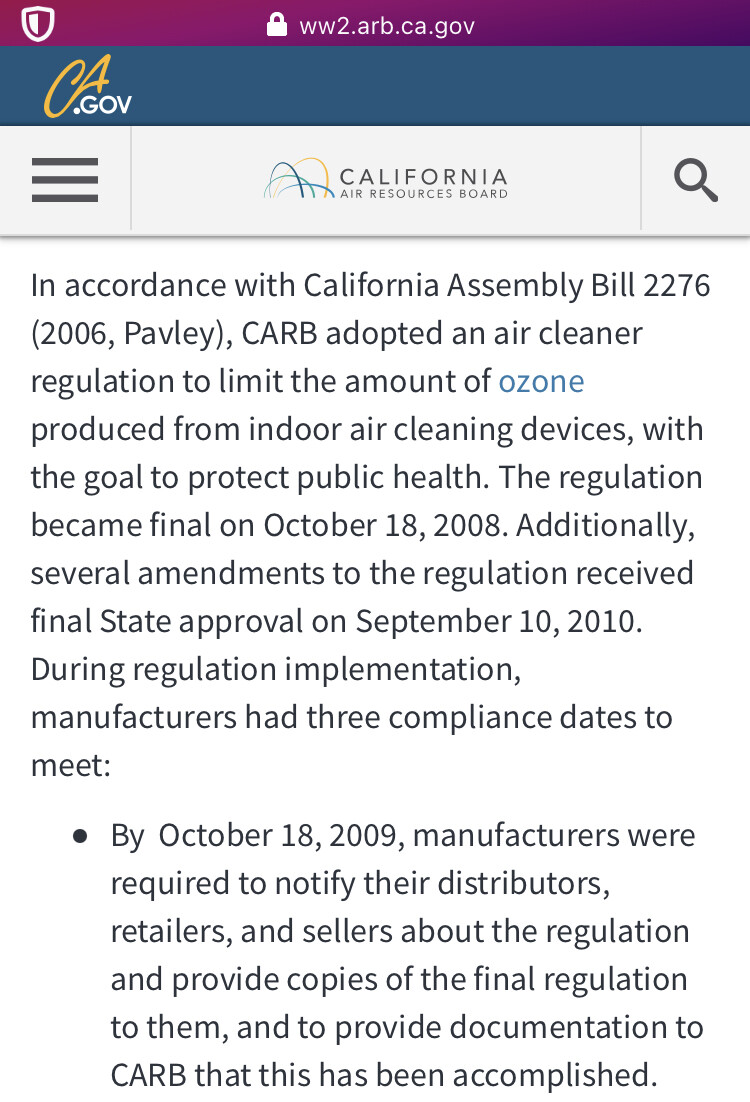 I recommend reading up on California’s Air Cleaner Regulation (AB 2276) from arb.ca.gov.